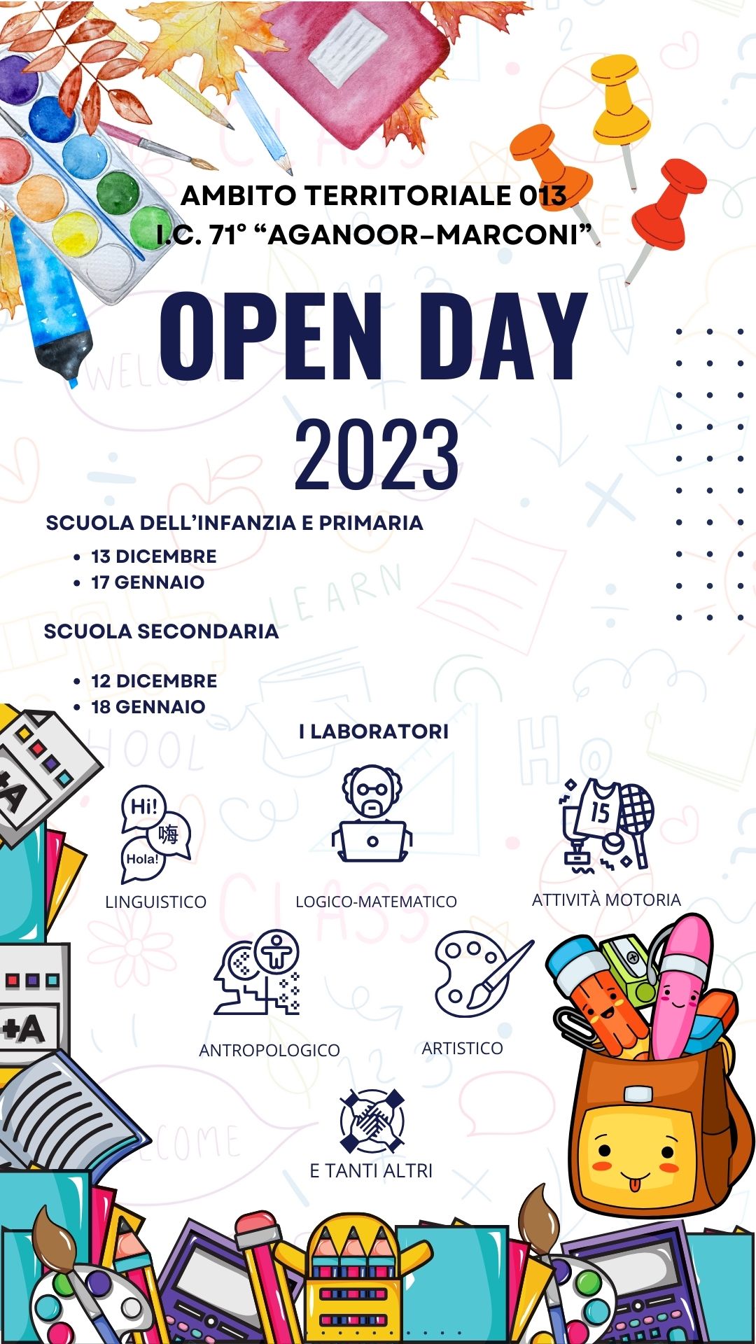 Si comunica che il nostro Istituto, nell’ambito delle attività di Orientamento e Continuità, ha organizzato gli OPEN DAY dei vari ordini di scuola, secondo il calendario e le modalità indicate nella circolare sotto allegata.